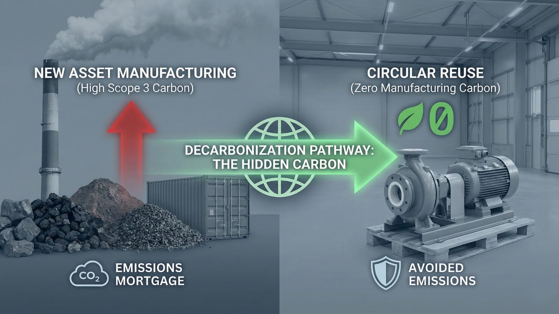 Scope 3 emissions account for over 80% of an industrial footprint. This deep dive explains the carbon mathematics of reuse, procurement's "Carbon ROI," and why the secondary market accelerates Net Zero.