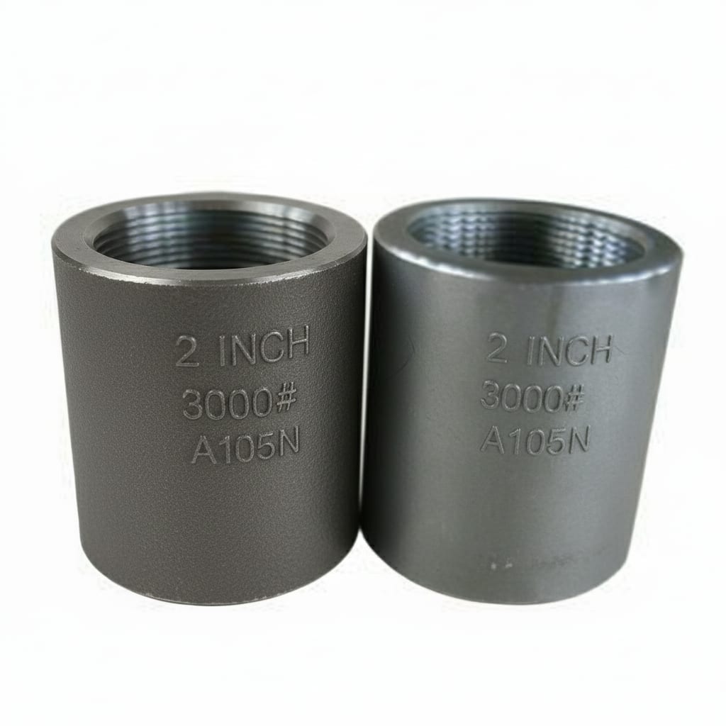 Forged Carbon Steel Full Coupling (ASTM A105). Rated Class 3000 for high-pressure threaded connections.