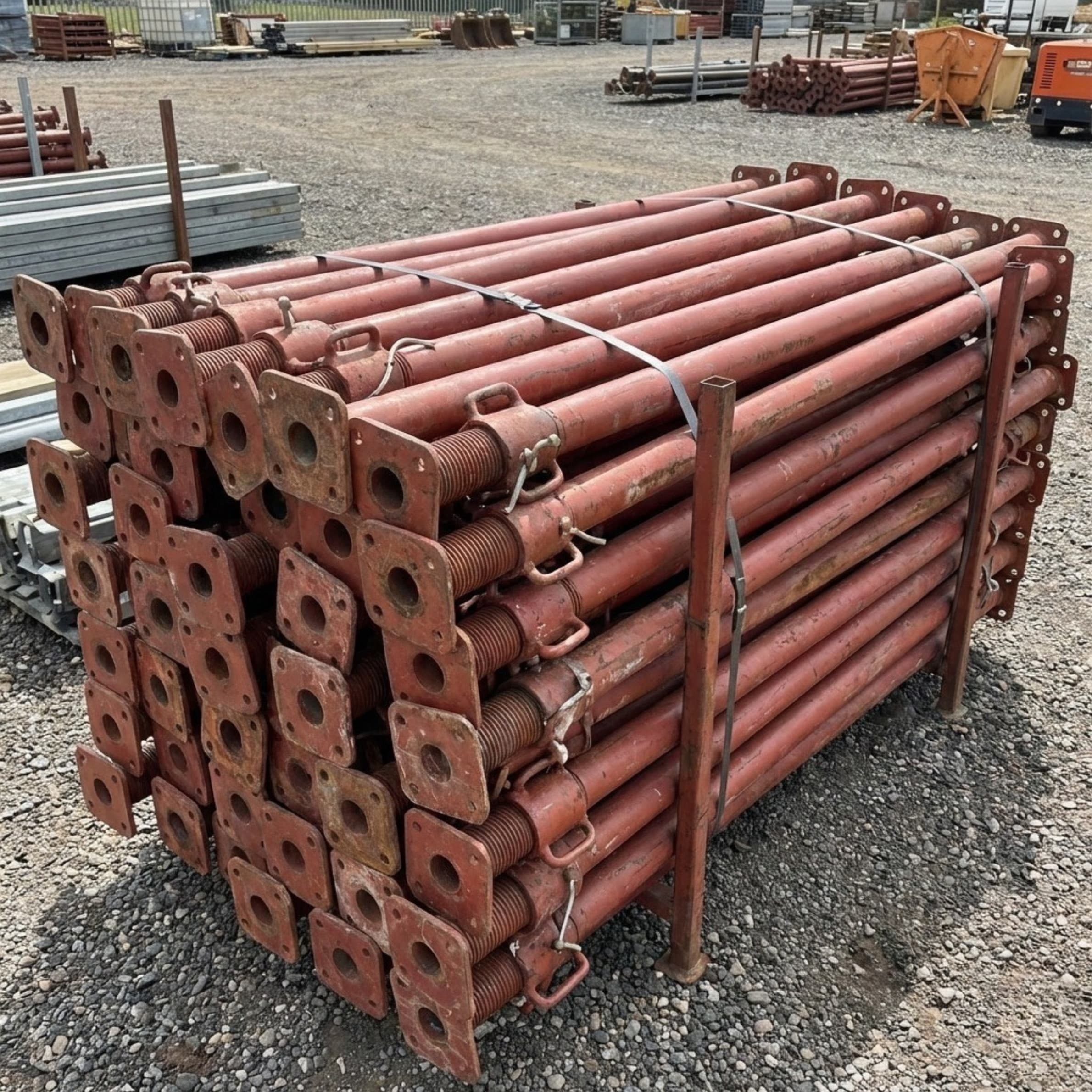 These essential surplus site infrastructure supports are bundled in lots of 25 to accommodate varying shoring requirements. Finished with a protective painted or dipped coating and featuring a heavy-duty base plate, they adjust smoothly from a closed 2.5 meters up to an extended 4.0 meters.