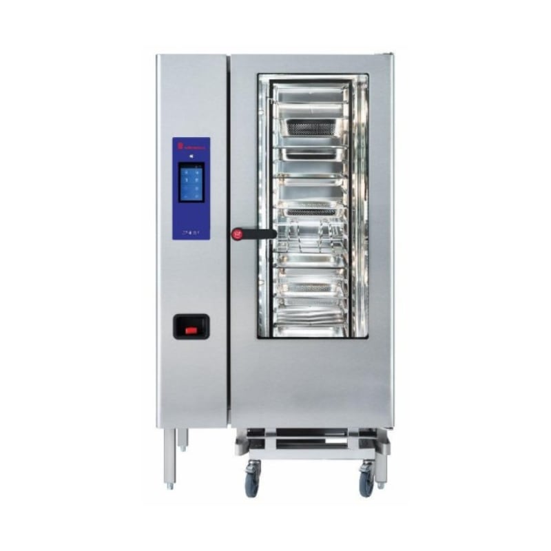 The Eloma Combi Oven (Genius 20-11 MT) is a robust, floor-standing professional combi steamer designed for high-volume kitchens like restaurants, hotels, and catering operations. It features intuitive MultiTouch controls, 9 versatile cooking modes, and precise humidity and temperature control from 30°C to 300°C for consistent, high-quality results. Built-in HACCP data logging and automatic cleaning (Autoclean® MT) help streamline operations, while German engineering ensures reliability and efficiency in daily use.