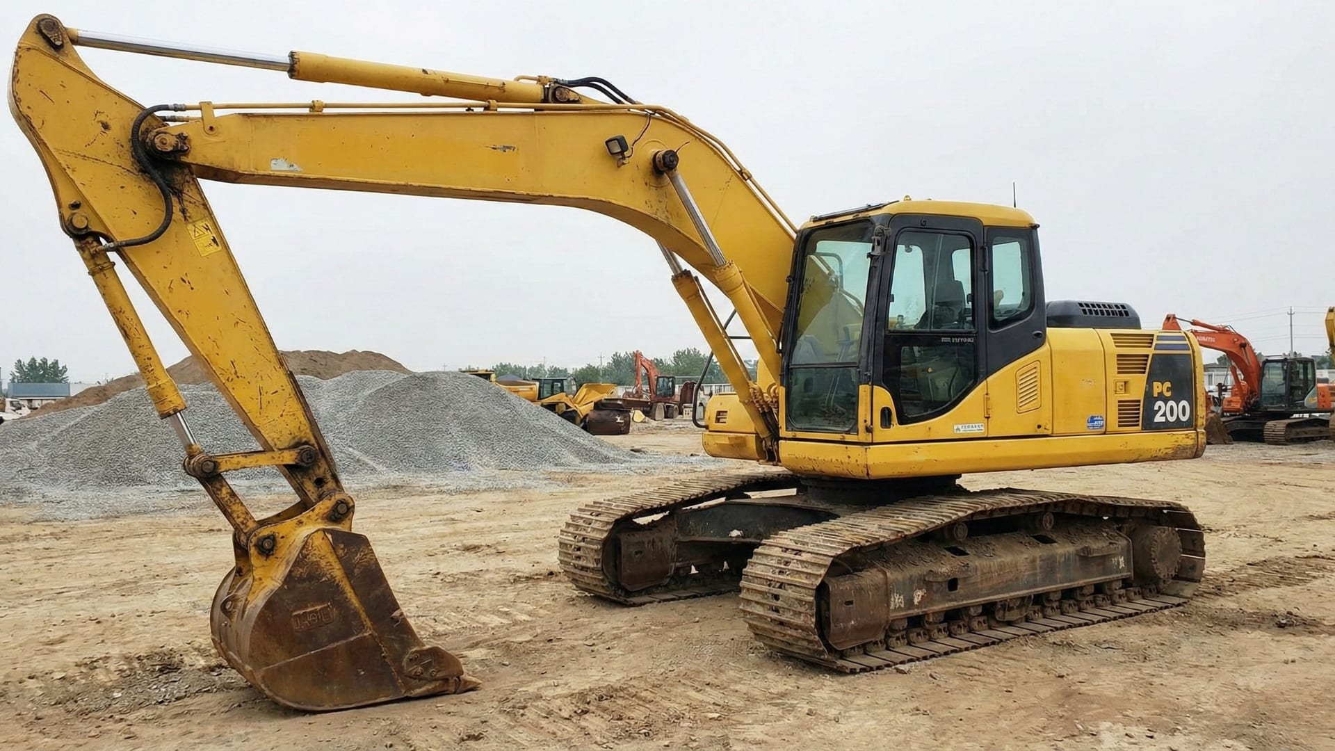 A heavy-duty hydraulic excavator designed for earthmoving, digging, and construction site preparation.