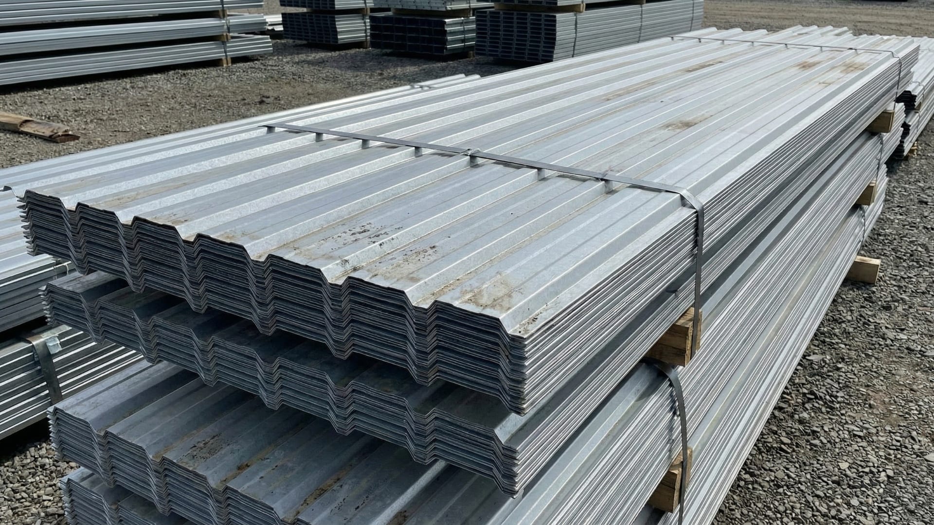 High-strength trapezoidal metal sheets used for durable roofing and wall cladding applications.